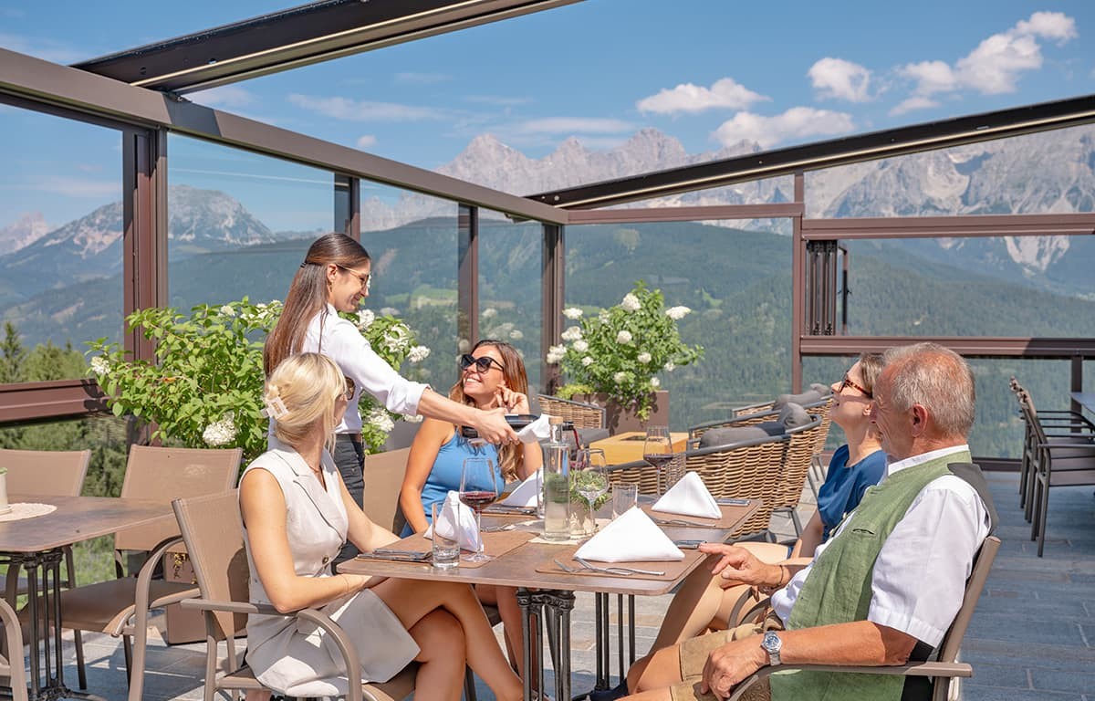 Dank der einzigartigen Lage und der unglaublich schönen Aussicht auf die umliegenden Berge und den Dachstein, gepaart mit der hohen Qualität unserer Küche und der besonderen Servicequalität unseres Teams, ist die Schnepf'n Alm auch immer wieder eine beliebte Location für Feiern und Hochzeiten.