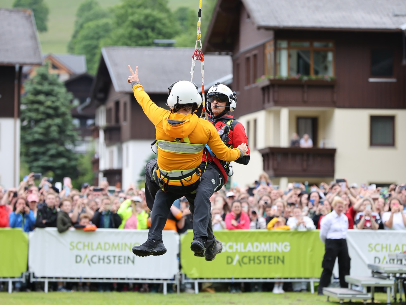 Die Bergretter Fans nutzten die Gelegenheit, um ihre Stars live in Aktion zu erleben. Auf dem abwechslungsreichen, ganztägigen Programm stand ein spektakulärer Bergrettungseinsatz mit der “echten” Bergrettung Ramsau am Dachstein und der ÖAMTC Flugrettung C14.